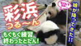 がんばる!彩浜🐼🌈ご飯の練習後つるりん!良浜🐼🌹の元へ可愛く登場❤ ジャイアントパンダ